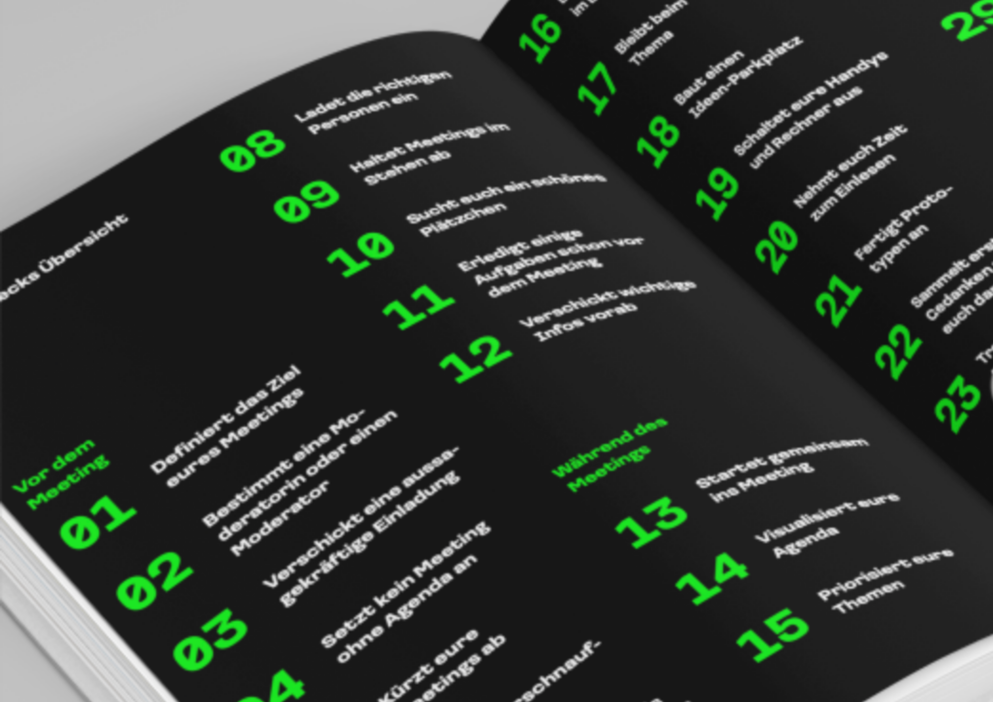 Du wirst feststellen, dass Raus aus der Meetlife Crisis kein klassisches Fachbuch ist. Alles ist auf konkrete Umsetzung ausgelegt.